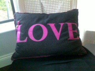 Grey Felt and pink stitched LOVE cushion