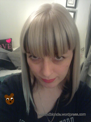 The result is a pearl tone blonde which is so shiny, the photo’s do not serve it justice you should see how pale and pearly the blonde is in the daylight!