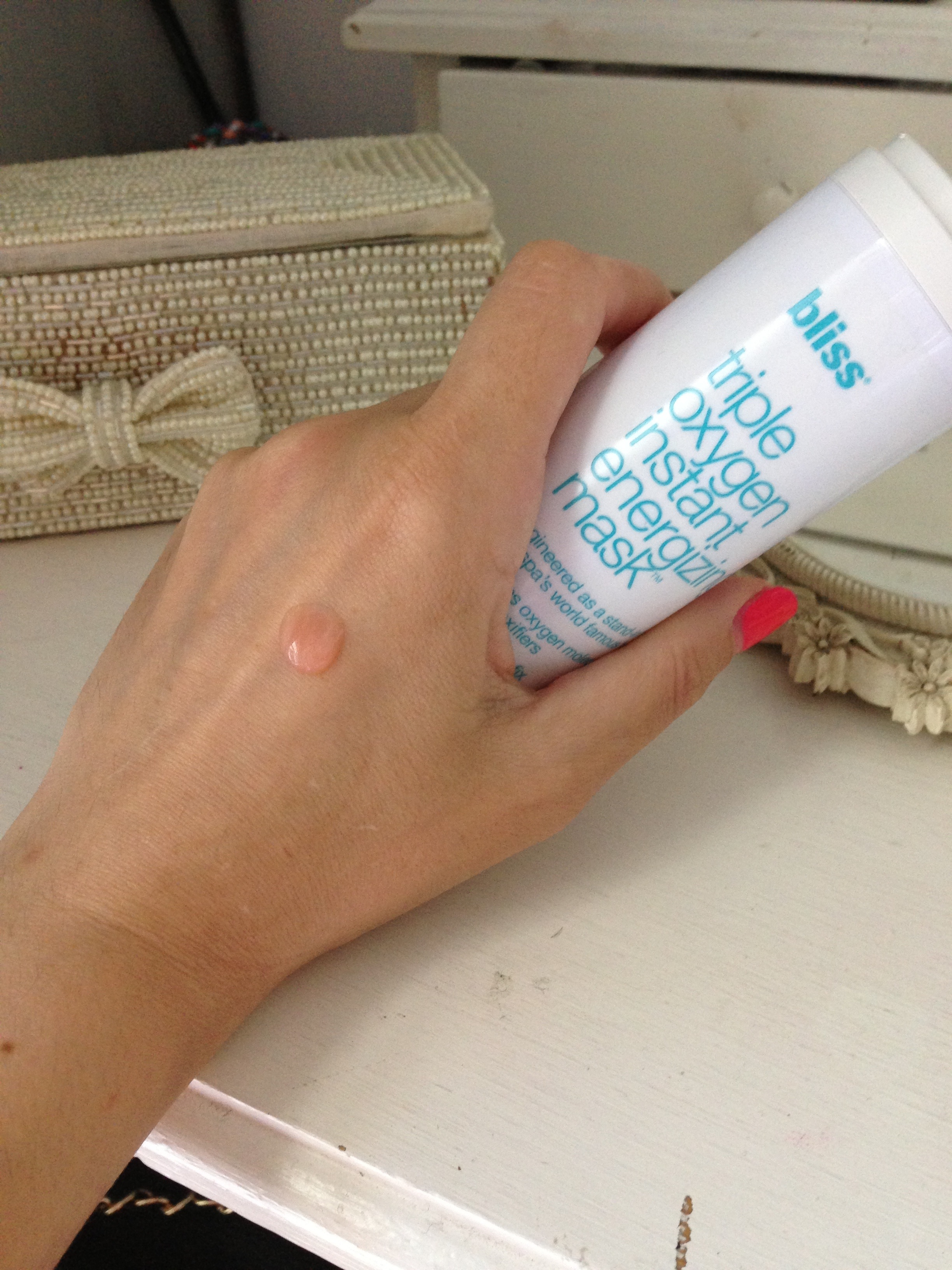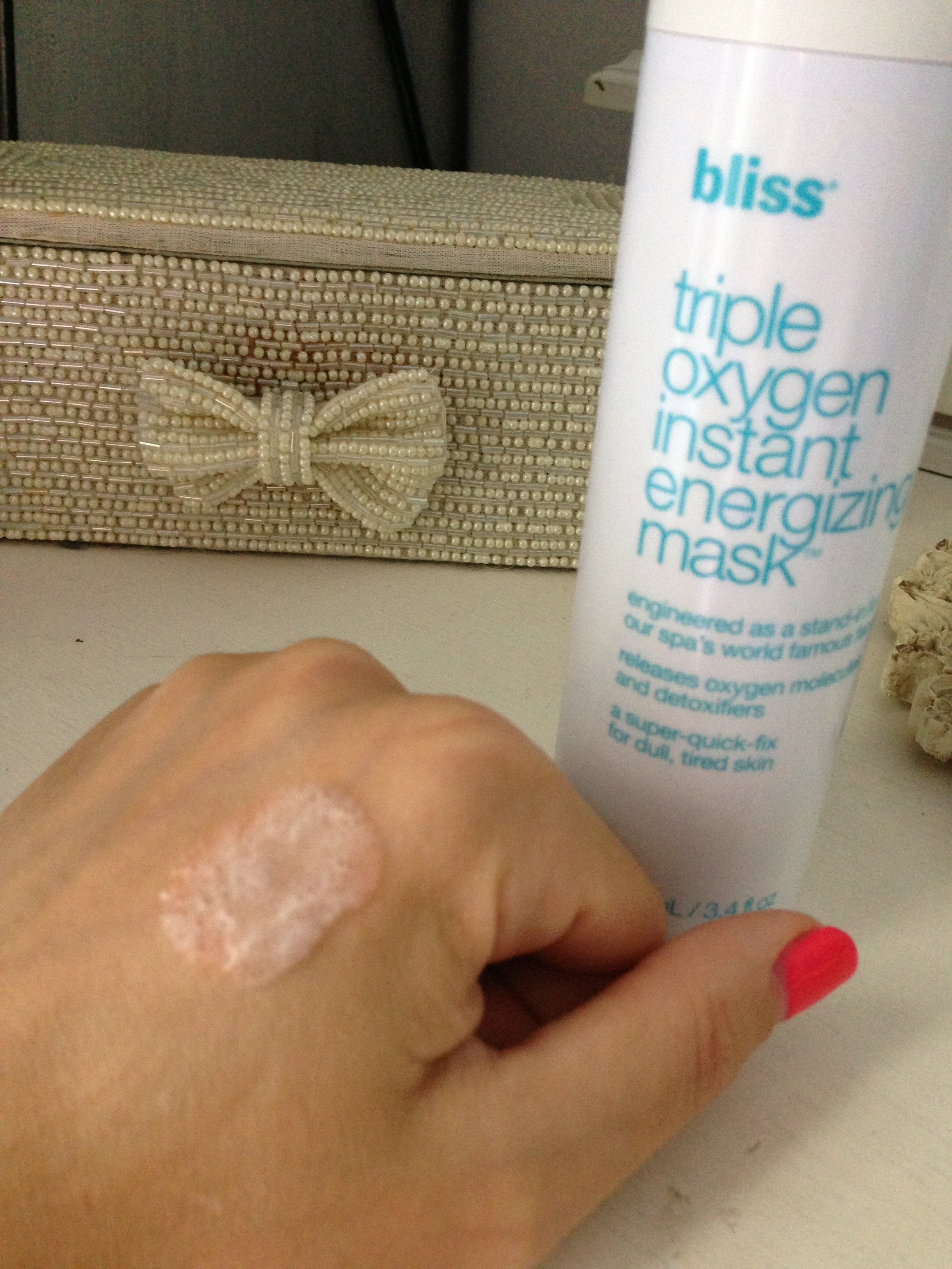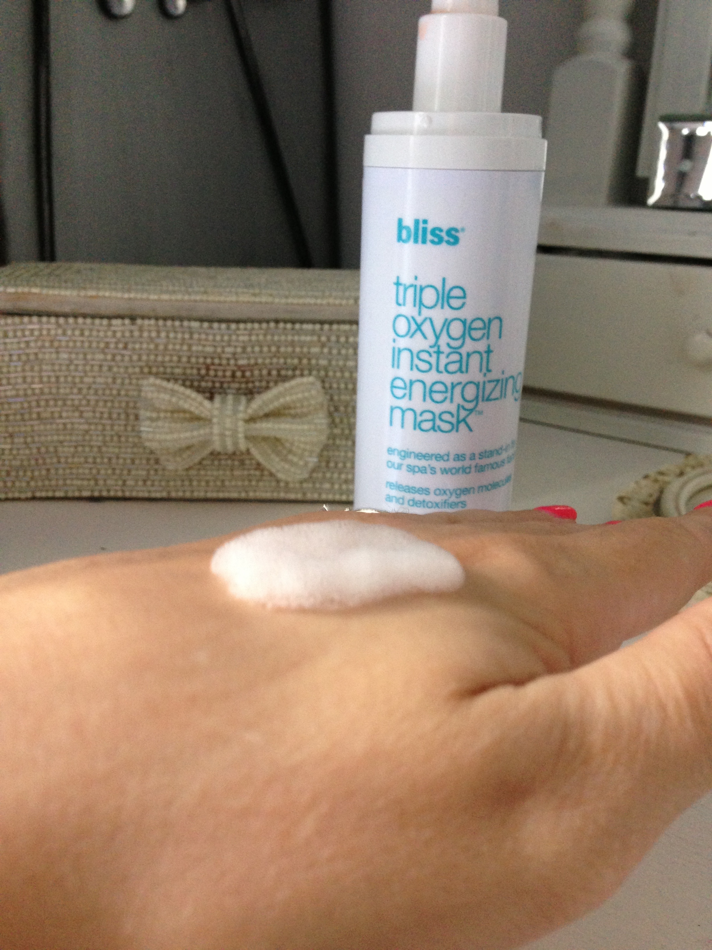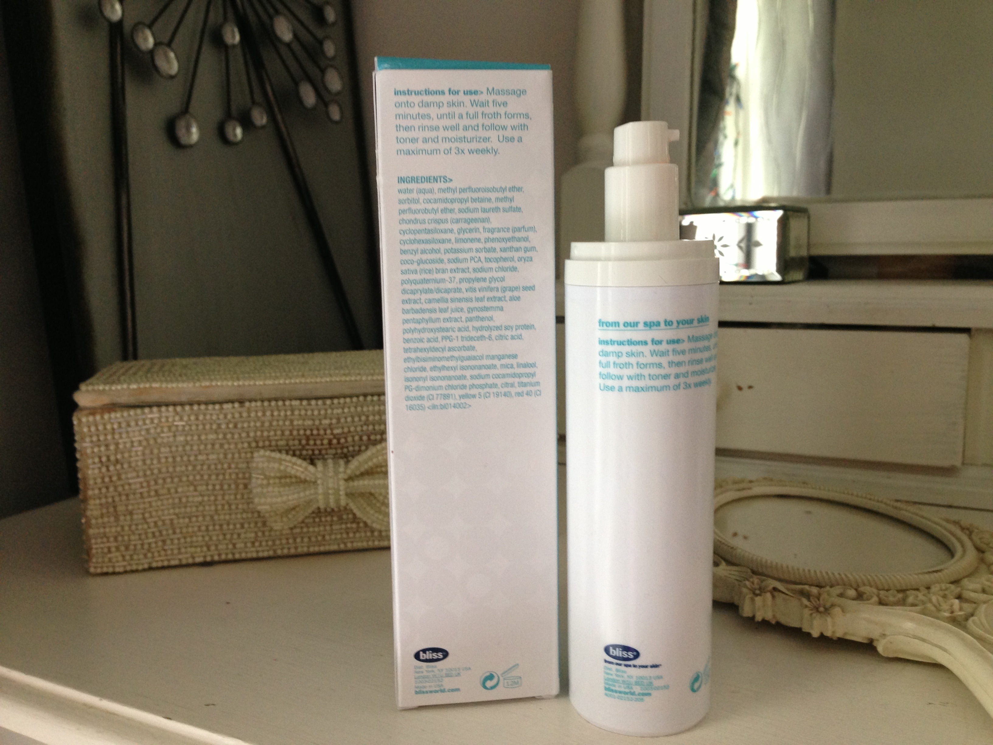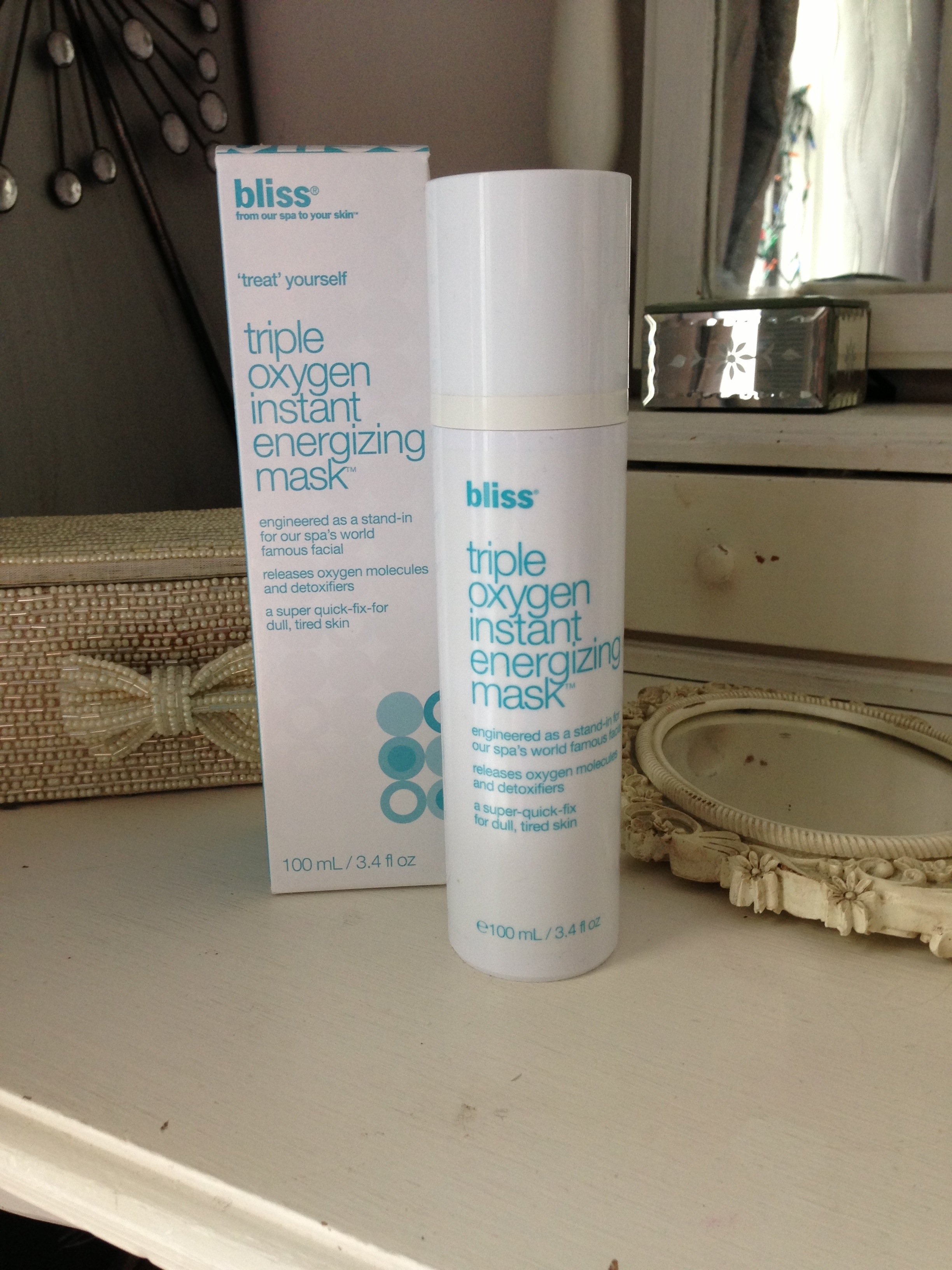 Leave on for 5 mins, which gives me enough time to wash my hair! Then after 5mins rinse off and pat dry. Tone and moisturise and normal. I use bliss triple oxygen +c energizing mask, see my post https://secondblonde.wordpress.com/2013/03/17/bliss-triple-oxygen-c-energizing-cream/ Team up with the bliss triple oxygen instant energizing eye gel. I’m about to start using this so will post my review.