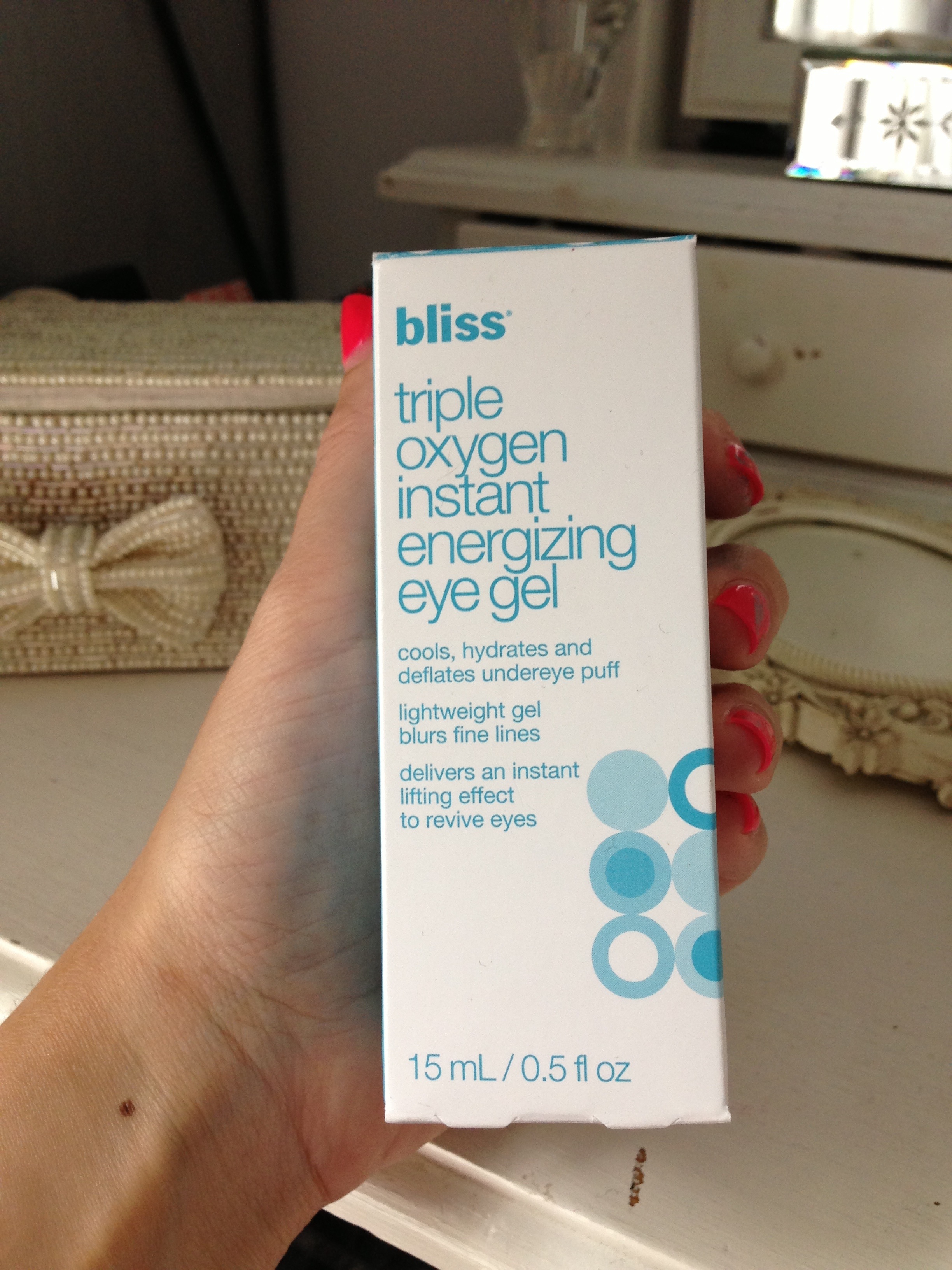 The 15ml bottle costs £42 and should last 3 months or more. It’s not cheap but it does wake up tired eyes!