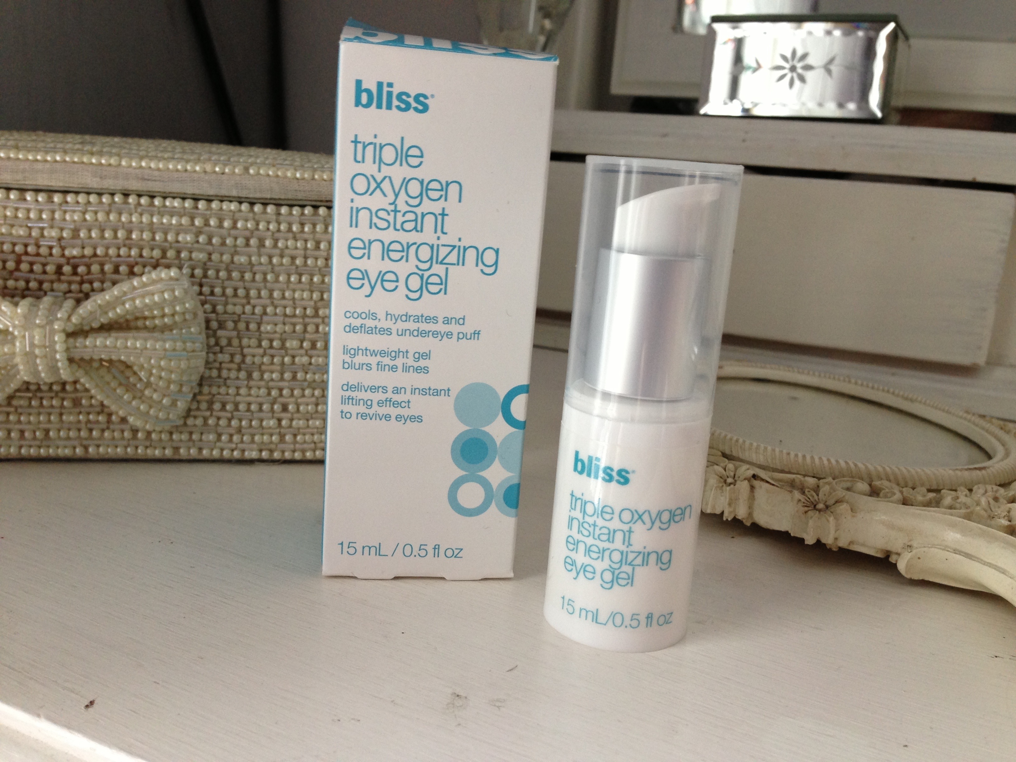 I apply it in the mornings patting it around my eye area under my tinted moisturiser. It’s gel formula is easily absorbed and cooling which I like, especially on mornings I am suffering with puffiness due to hay fever. It doesn’t have any perfume which is good. It de-puffs and softens my fine lines, instantly looking like I’ve had 10 hours sleep!