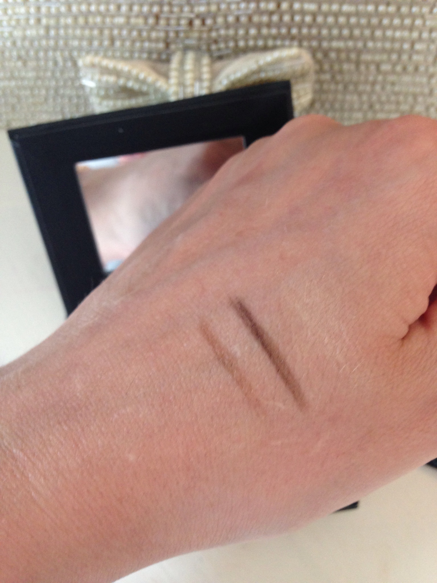 A swatch of the wax, shaddow and high lighter. Sorry it’s not the best of lighting in this photo.
