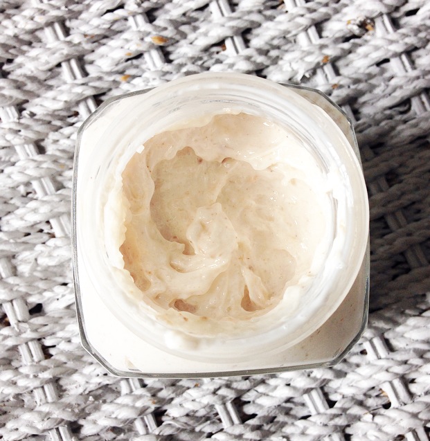 I love the luxury look of having a body scrub in a glass jar, looks great in my bathroom. The almond Coconut Milk is a seductive, warm and comforting which is a rich and alluring experience. The texture is quite different to what I normally experience with body scrubs. It contains exfoliating beads and sugar in large chunky pieces, the cream is quite gooey, almost like a thick creamed rice pudding!